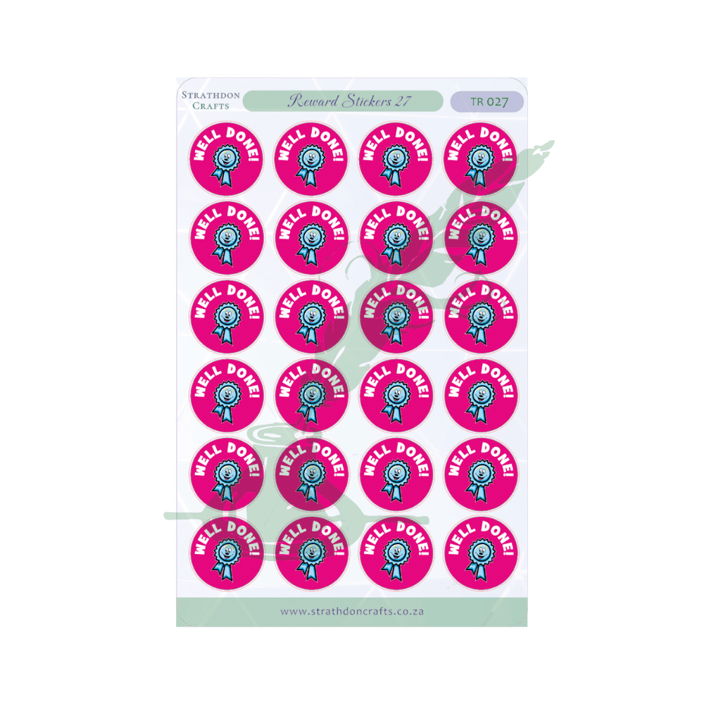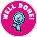 Teacher Reward Winner Rosette Well Done! Sticker Sheets – using a Premium Matte self adhesive photo paper. Not laminated.